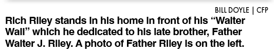 At his home, Mr. Riley has what he calls his “Walter Wall,” a wall and table covered with photos, plaques and baseball jerseys worn by his late brother. Father Riley played for St. Peter-Marian High School’s Division 1 state championship baseball team in 1977. There’s even a baseball card of former Red Sox catcher Rich Gedman, who was one of his teammates on the state title team.